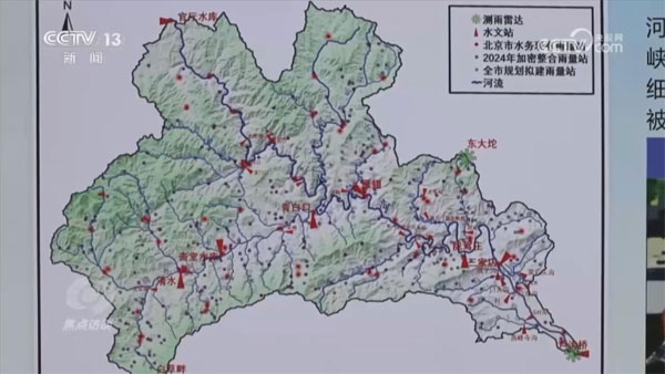 杜龍剛:“過去傳統(tǒng)北京水務(wù)用的是245個(gè)雨量站,今年,我們通過加密并整合氣象部門和北京市規(guī)劃和自然資源委員會的雨量站點(diǎn),達(dá)到了1900多個(gè)。”